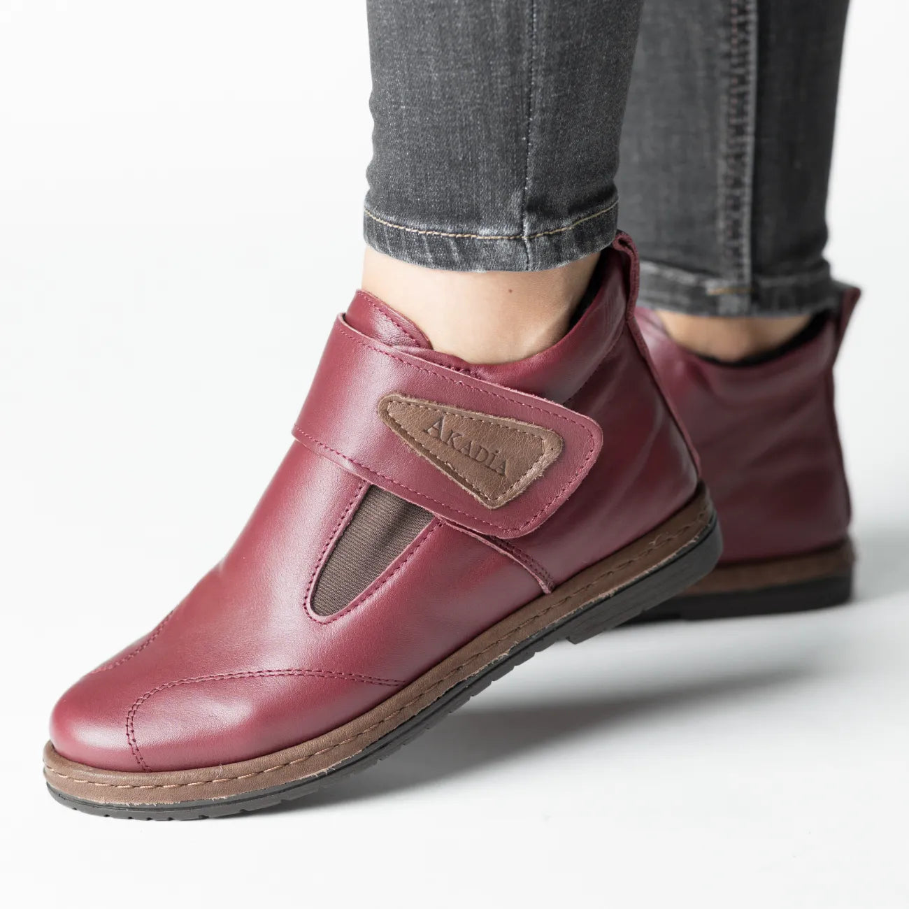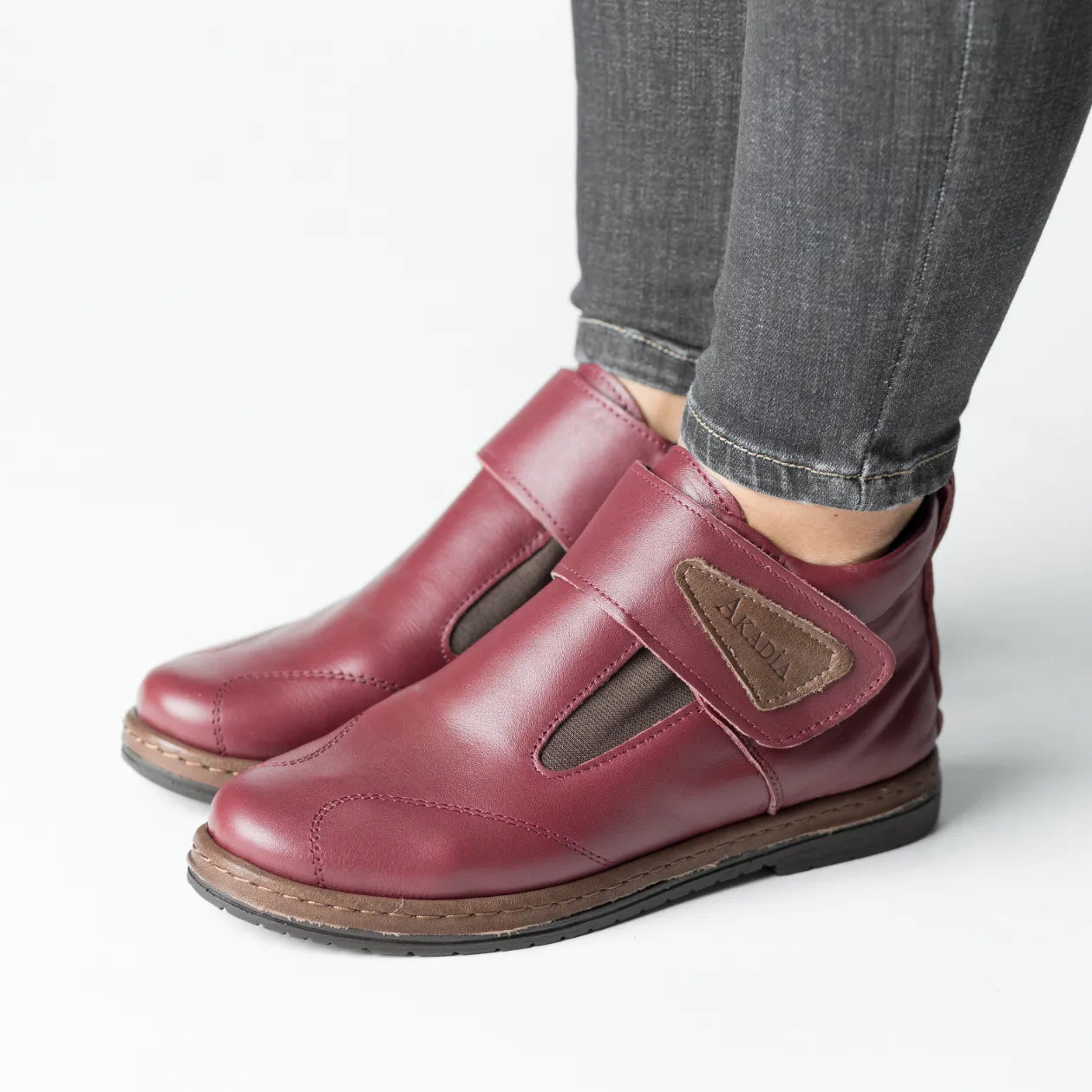 Women's burgundy ankle boots made of genuine leather Zagreb