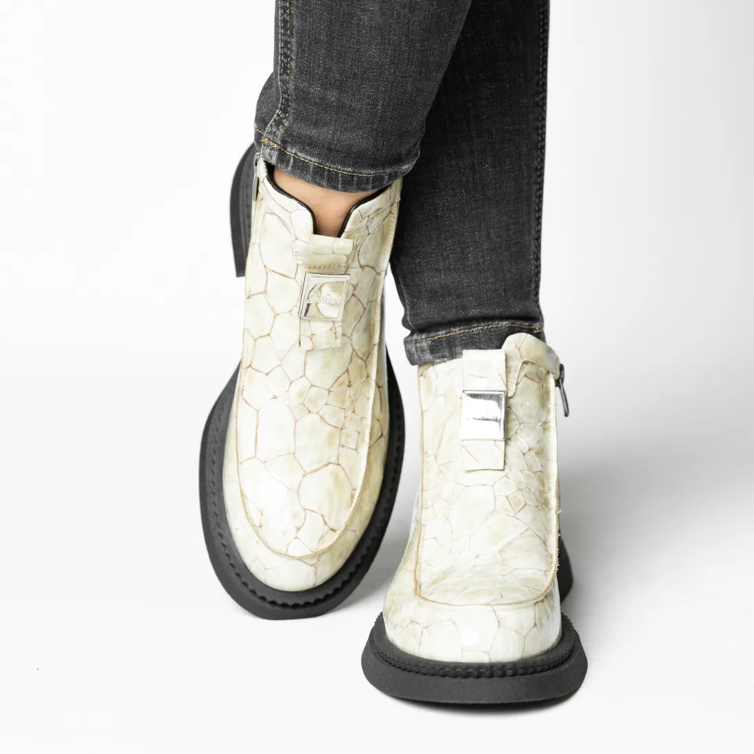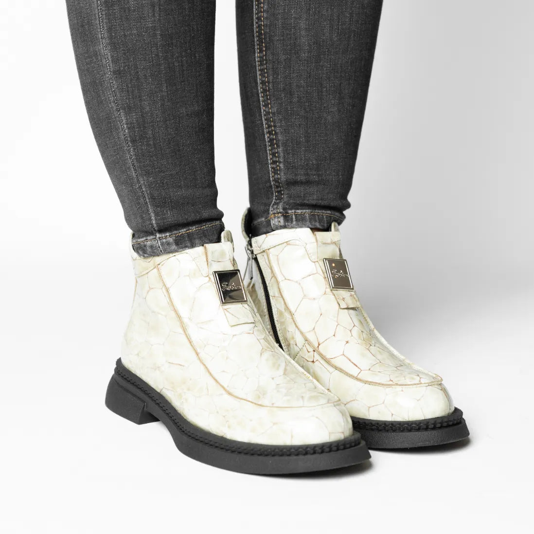 Ghete de dama din piele naturala, ce imbina durabilitatea cu un design elegant si functional. Realizate din piele fina, moale si rezistenta, aceste ghete asigura un suport excelent pentru picioare pe tot parcursul zilei. Inchiderea cu siret permite reglarea perfecta pentru confort personalizat, iar brantul memory, moale si prietenos cu pielea, sporeste senzatia de confort. Talpa din spate are o inaltime de 4,5 cm, oferind un plus de sustinere si un look rafinat. Un model ideal pentru femeile care apreciaza calitatea si stilul durabil.