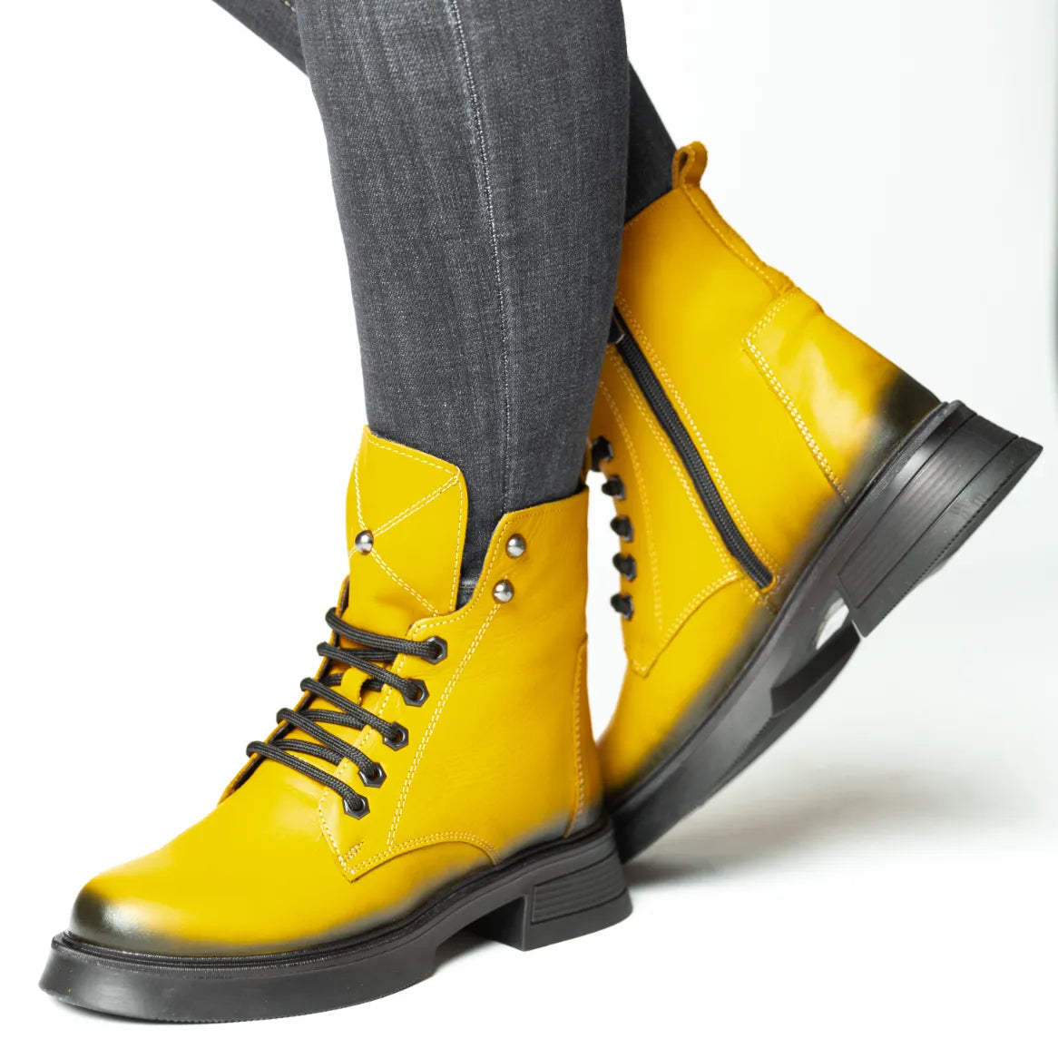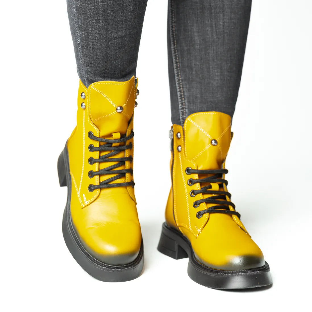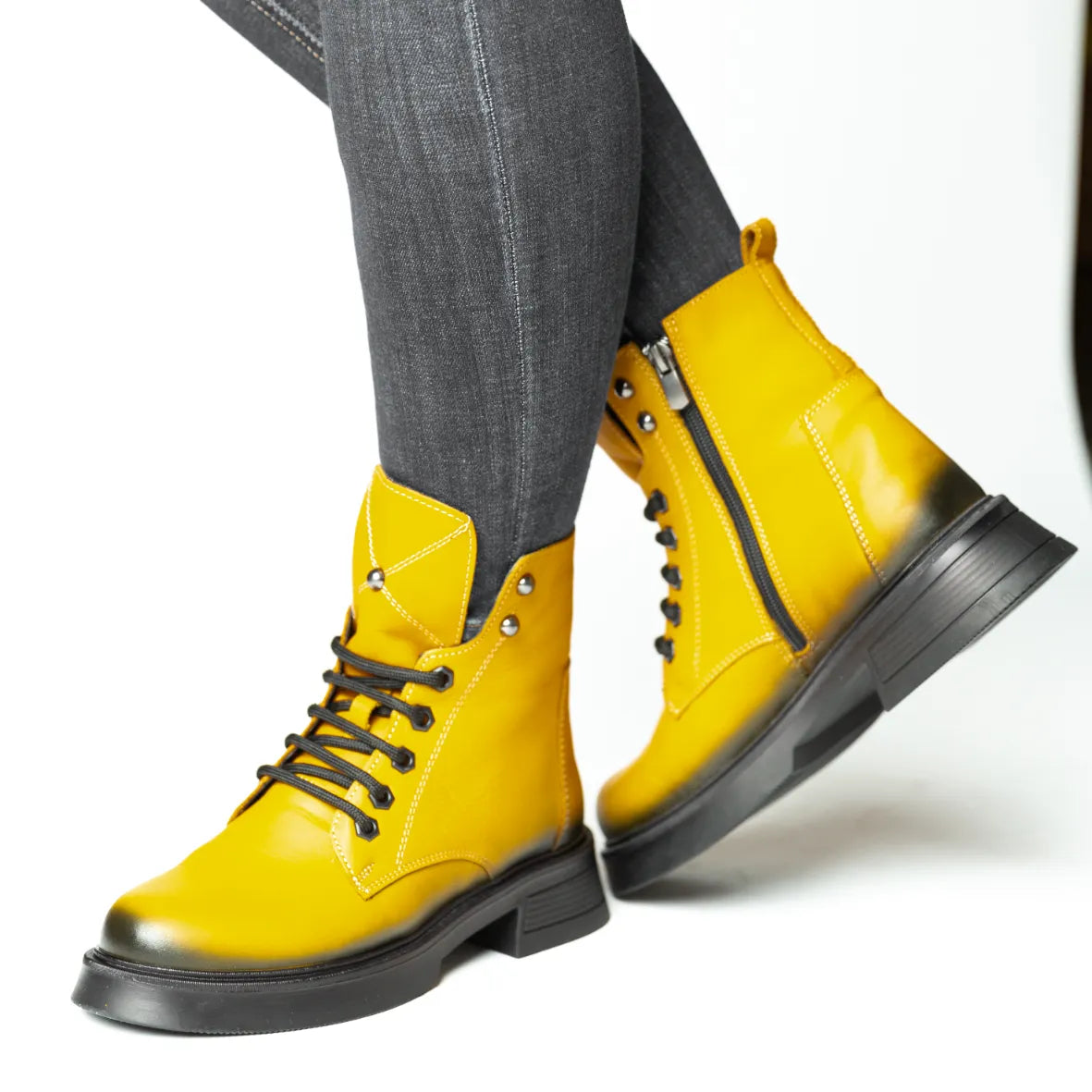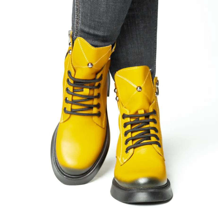 Ghete de dama lucrate pe calapod mare, confectionate din piele naturala de calitate, ideale pentru zilele reci. Interiorul captusit ofera caldura si confort sporit, iar talpa rezistenta, cu inaltime de 4 cm, asigura stabilitate si sustinere. Cu o greutate de doar 445g la marimea 38, acest model este usor si comod, perfect pentru purtarea zilnica. Designul practic cu fermoar faciliteaza incaltarea rapida, iar finisajele atent realizate garanteaza durabilitate si eleganta in timp.
