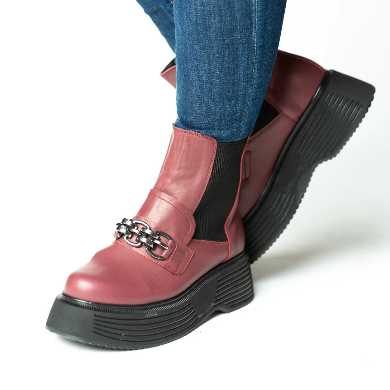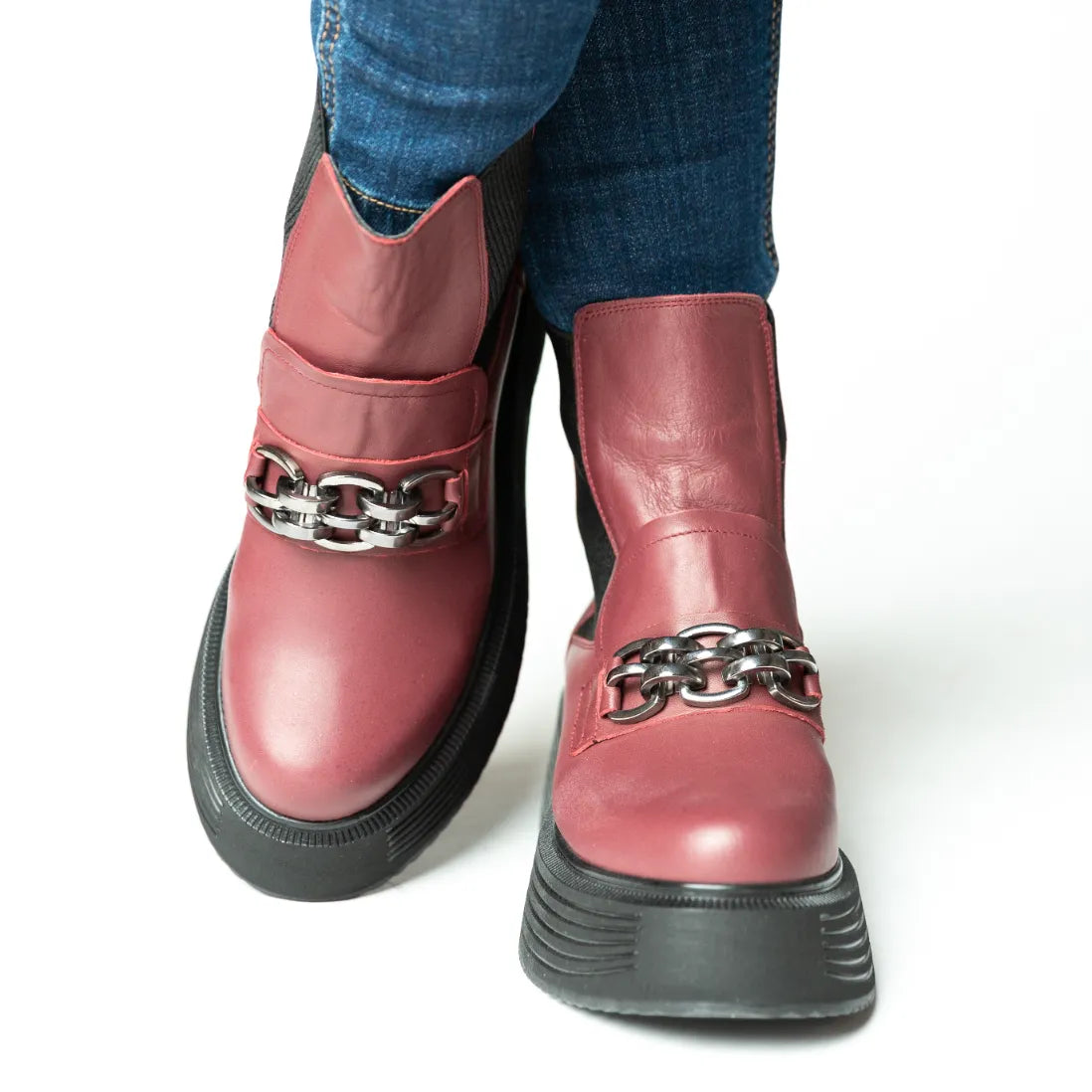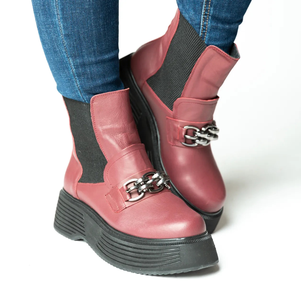 Ghete de dama lucrate pe calapod mare, confectionate din piele naturala de calitate, ideale pentru zilele reci. Interiorul captusit ofera caldura si confort sporit, iar talpa rezistenta, cu inaltime de 4.5 cm, asigura stabilitate si sustinere. Acest model este usor si comod, perfect pentru purtarea zilnica. Designul practic cu fermoar faciliteaza incaltarea rapida, iar finisajele atent realizate garanteaza durabilitate si eleganta in timp.