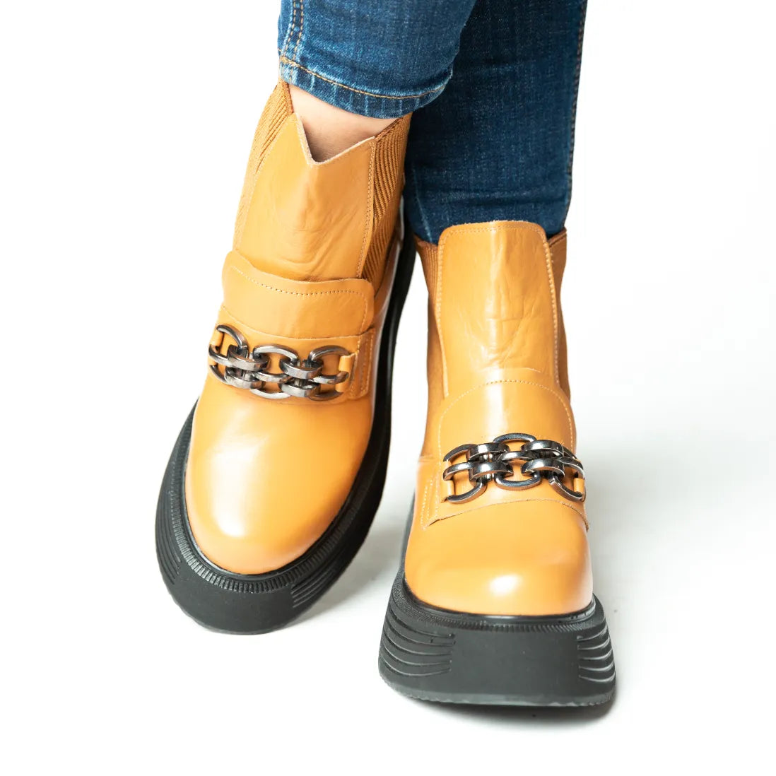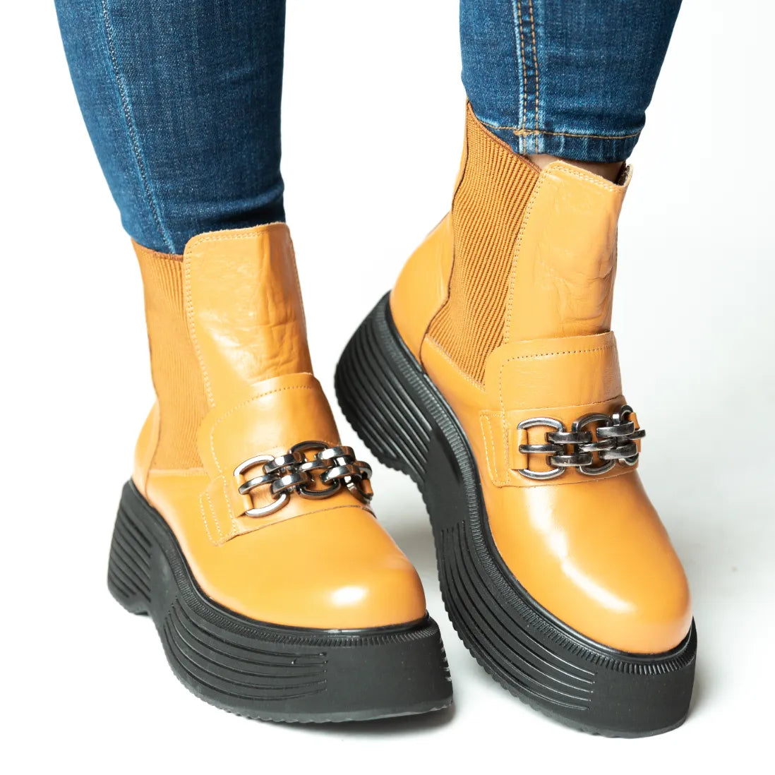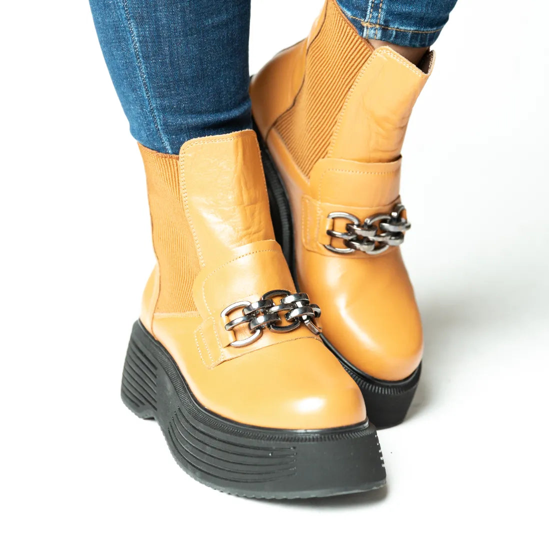 Ghete scurte dama cu platforma si imblanite Galben din piele naturala Brussels