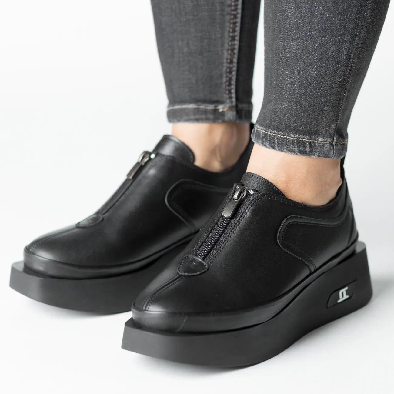 Women's casual shoes with zipper Black elegant natural leather Sinergie
