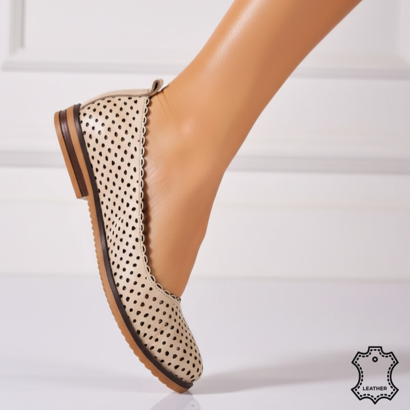 Adauga un plus de stil garderobei tale și bucura-te de confort pe parcursul întregii zile cu balerinii din piele naturala Nerisa Bej! Comanda acum și experimenteaza eleganța fara compromisuri.