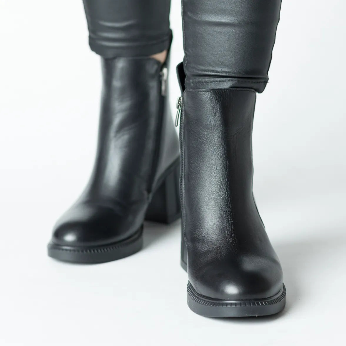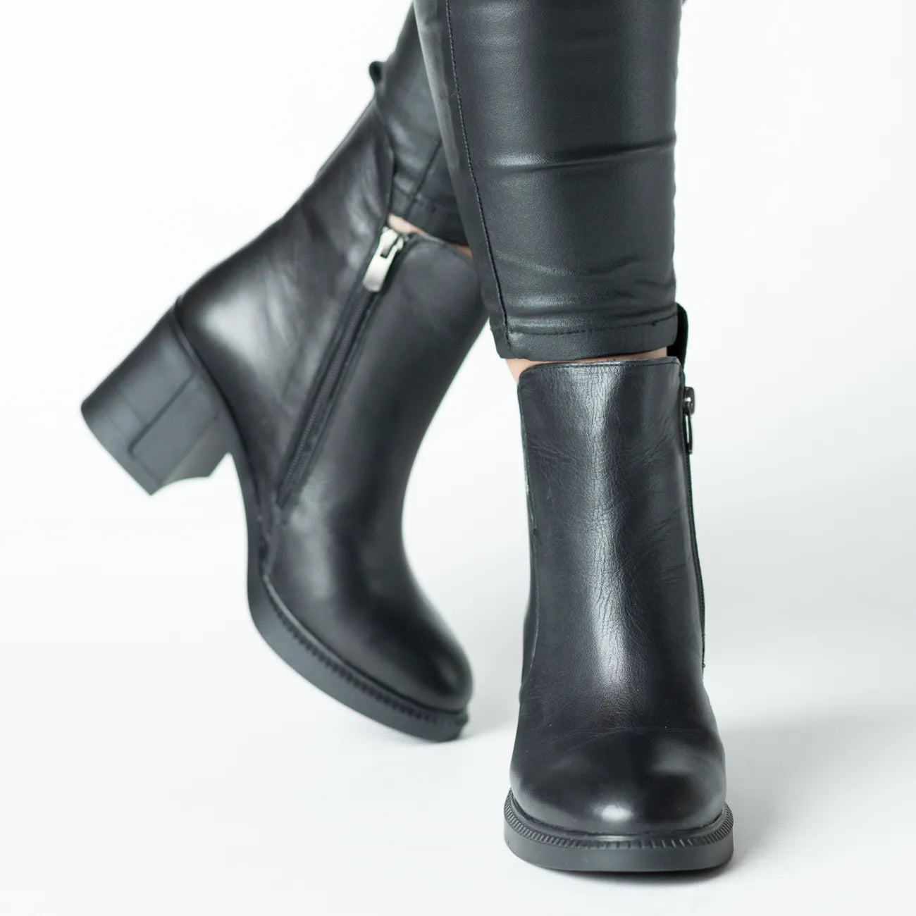 Botine de dama din piele naturala, cu toc gros de 7 cm, special create pentru a oferi confort si stabilitate pe durata intregii zile. Interiorul captusit asigura caldura si o...