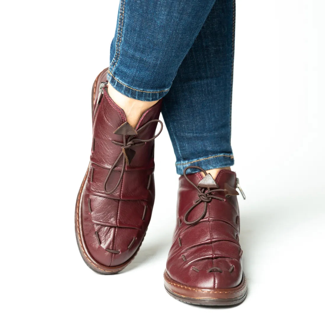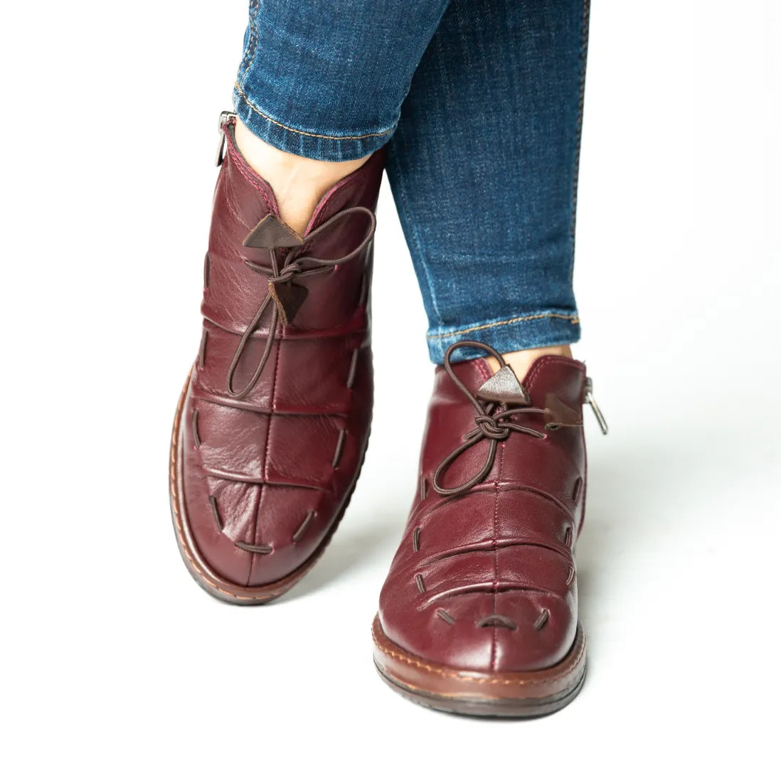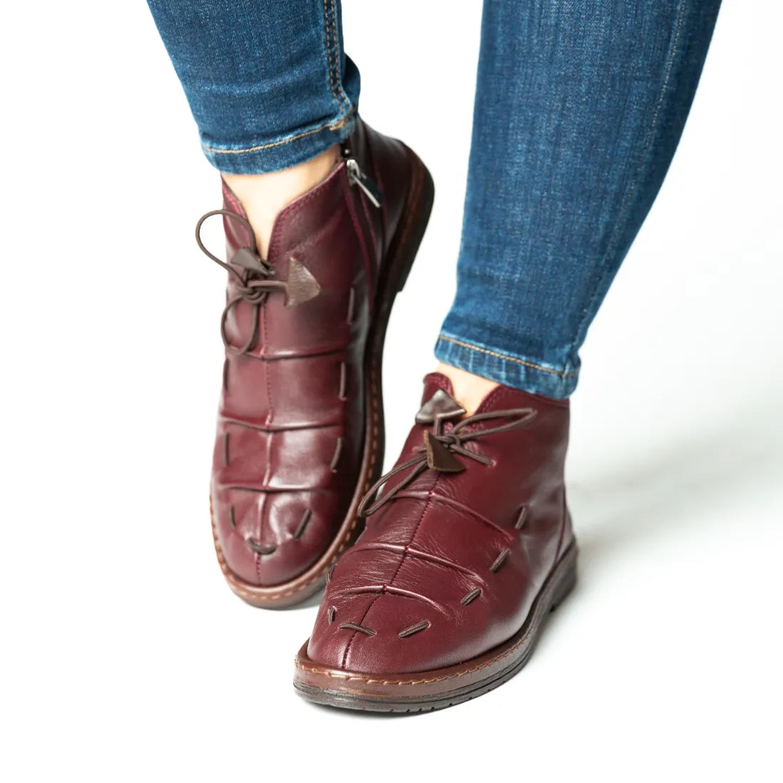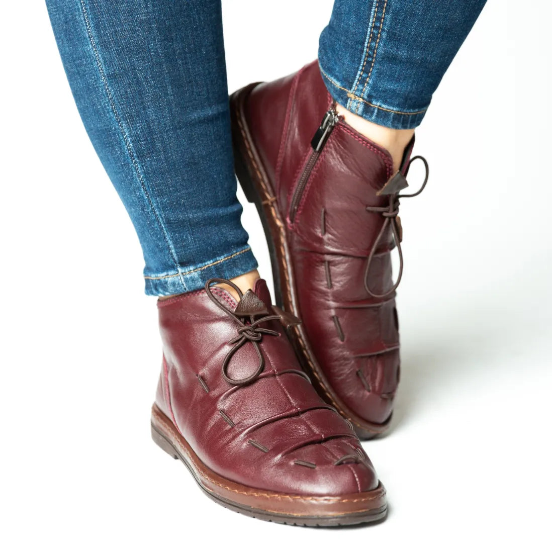 Ghete de dama lucrate pe calapod mare, confectionate din piele naturala de calitate, ideale pentru zilele reci. Interiorul captusit ofera caldura si confort sporit, asigura stabilitate si sustinere. Acest model este usor si comod, perfect pentru purtarea zilnica. Designul practic cu fermoar faciliteaza incaltarea rapida, iar finisajele atent realizate garanteaza durabilitate si eleganta in timp.