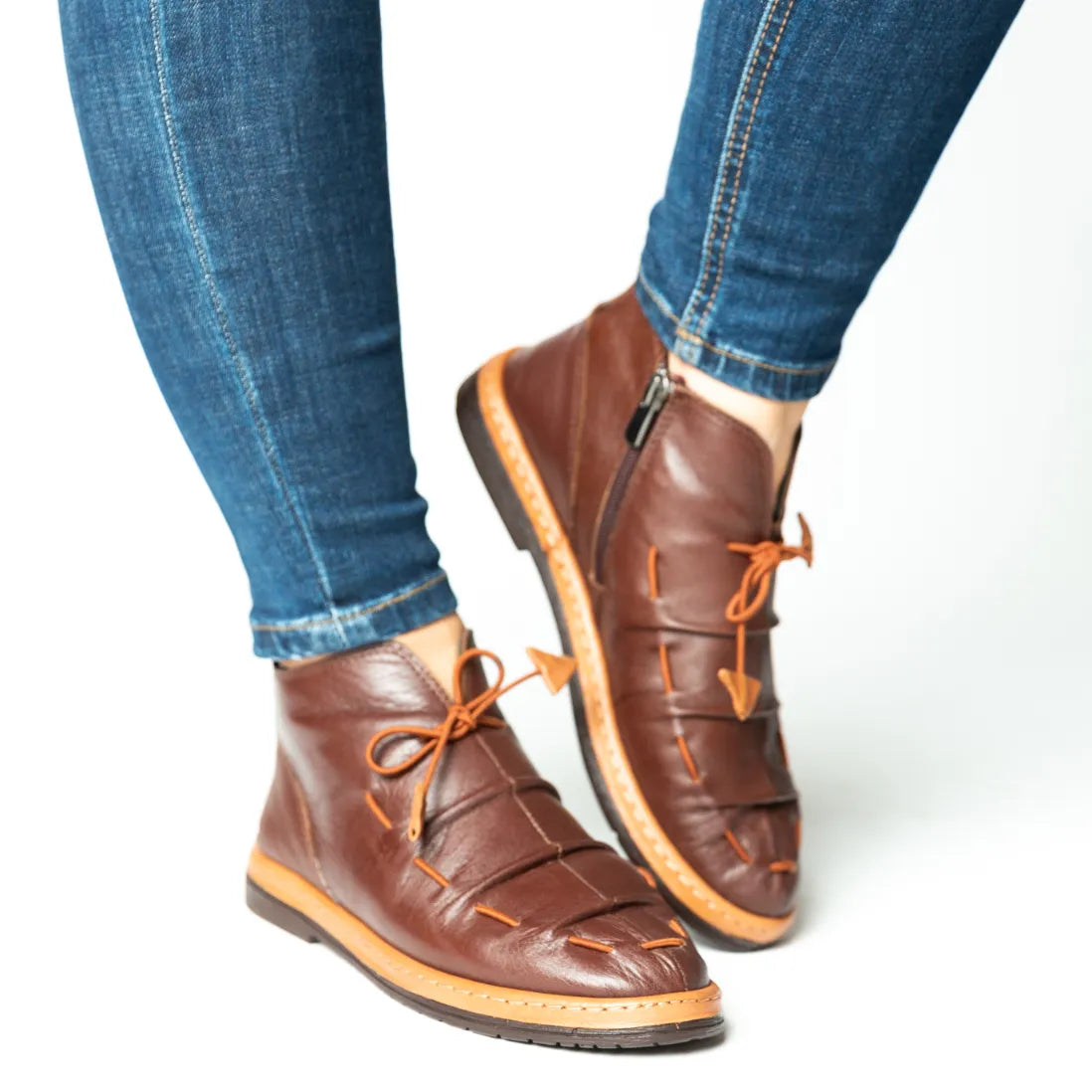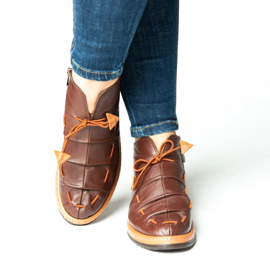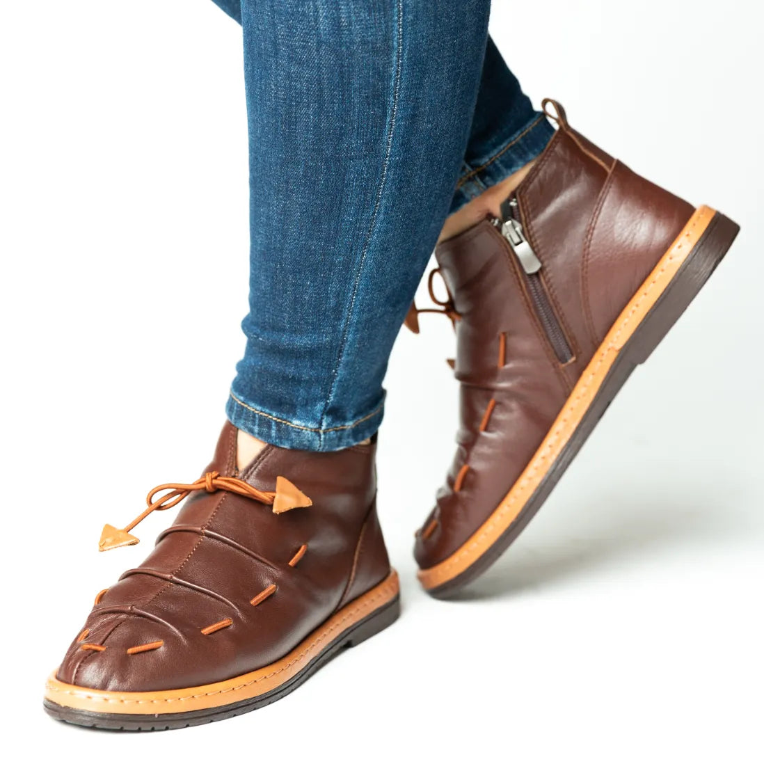 Ghete casual scurte dama cu sireturi Maro din piele naturala Oslo