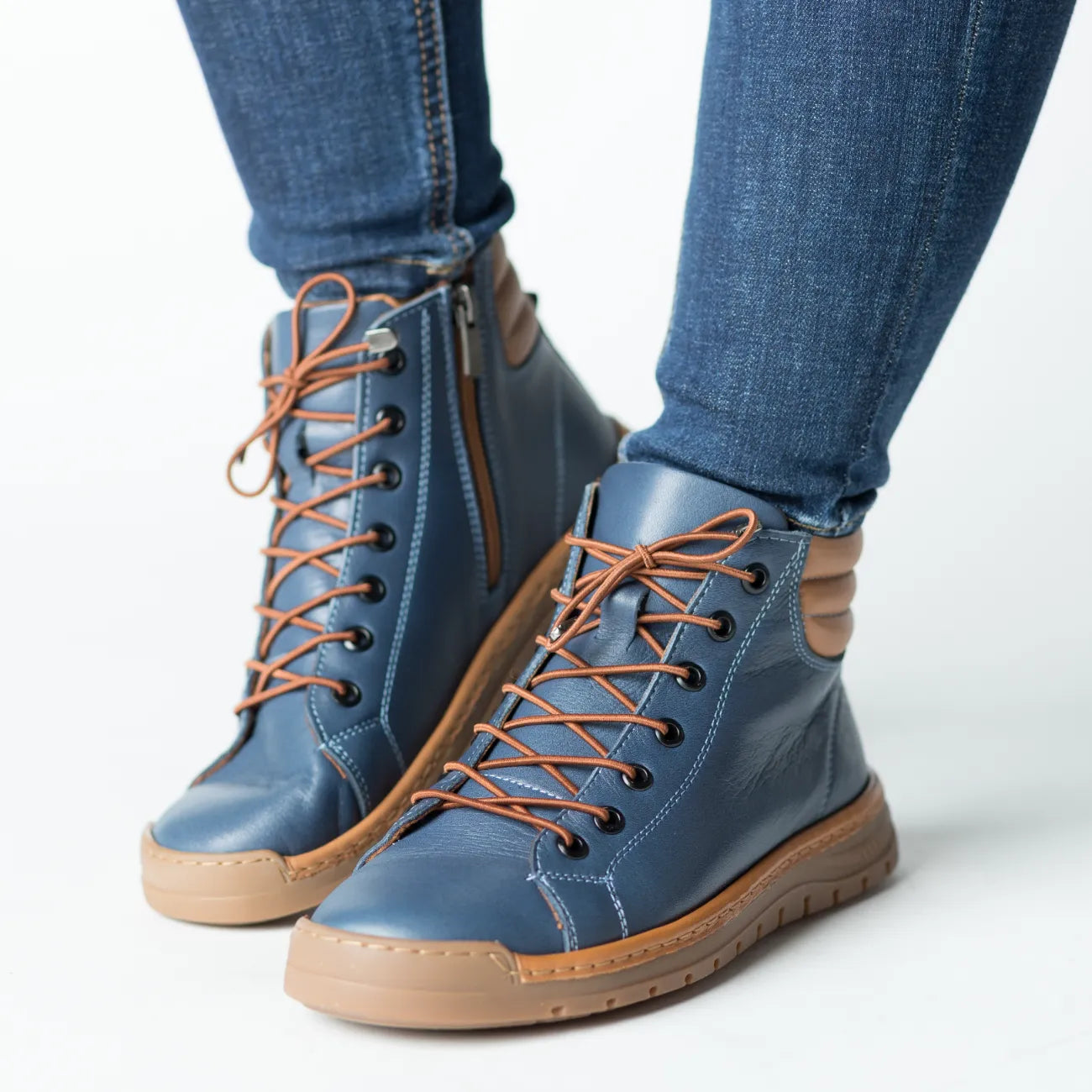 Ghete de dama din piele naturala, cu fermoar la glezna, ideale pentru purtarea de zi cu zi. Modelul combina nuantele bej si maro, oferind un aspect modern si versatil. Interiorul captusit asigura confort si caldura, iar talpa cu platforma de 3.5 cm ofera sustinere si stabilitate pe durata intregii zile. Recomandate pentru un stil casual, aceste ghete sunt fabricate din materiale de inalta calitate si sunt perfecte pentru tinute confortabile si elegante. Se recomanda alegerea marimii uzuale pentru o potrivire perfecta.