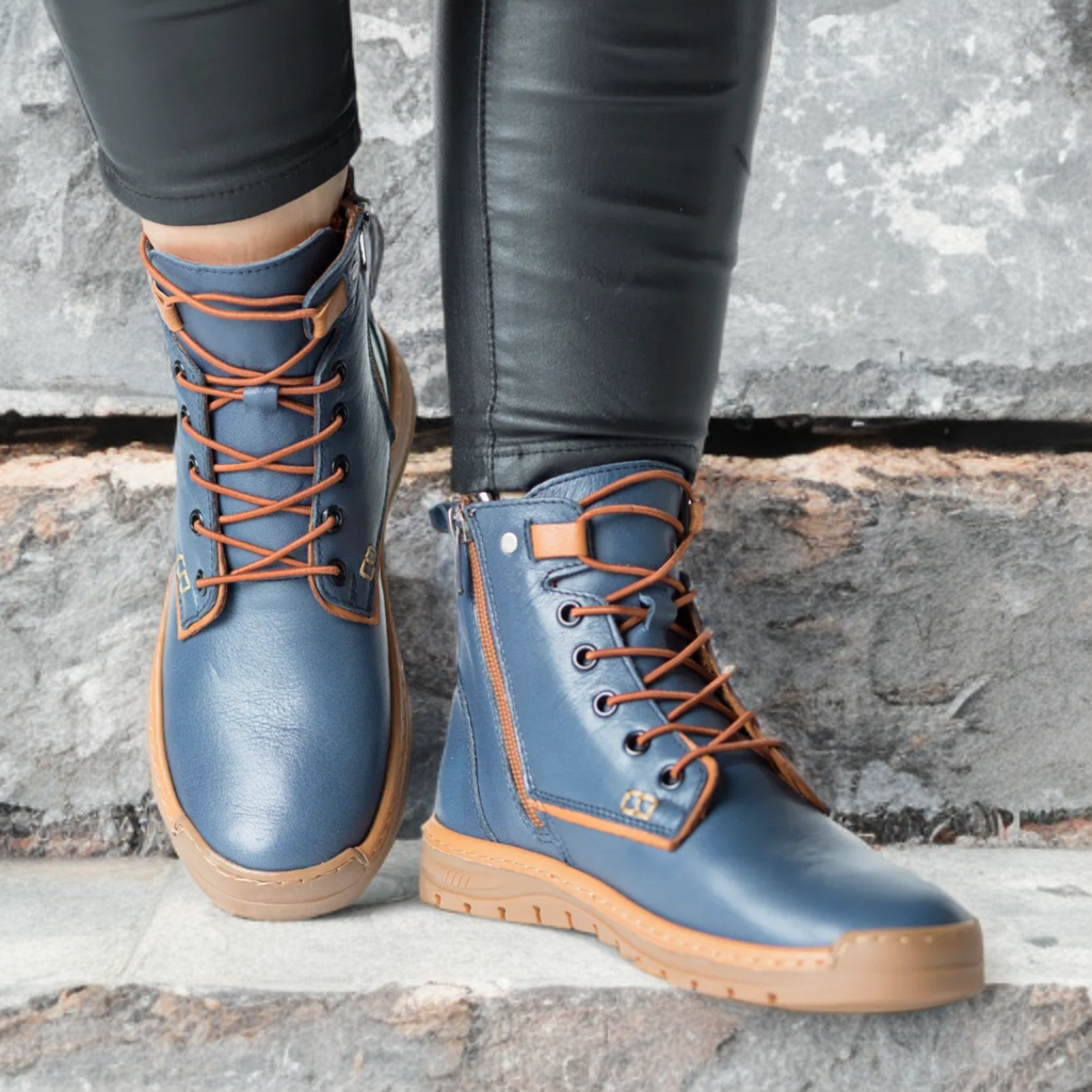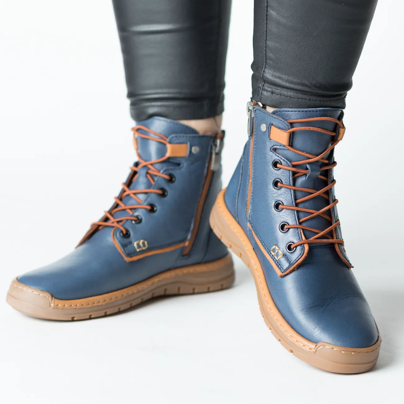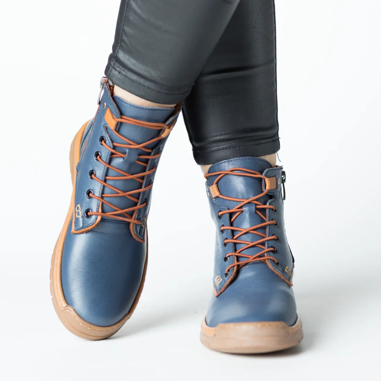 Ghete de dama din piele naturala, prevazute cu fermoar lateral pentru o incaltare rapida si usoara. Interiorul captusit asigura confort si caldura in sezonul rece, iar talpa usoara, cu inaltime de 2 cm in fata si 3 cm in spate, ofera stabilitate si sustinere optima. Cu o greutate de doar 349g la marimea 38, aceste ghete sunt comode si practice, perfecte pentru purtarea zilnica. Designul elegant si finisajele de calitate transforma acest model intr-o alegere versatila, potrivita atat pentru tinute casual, cat si smart-casual.