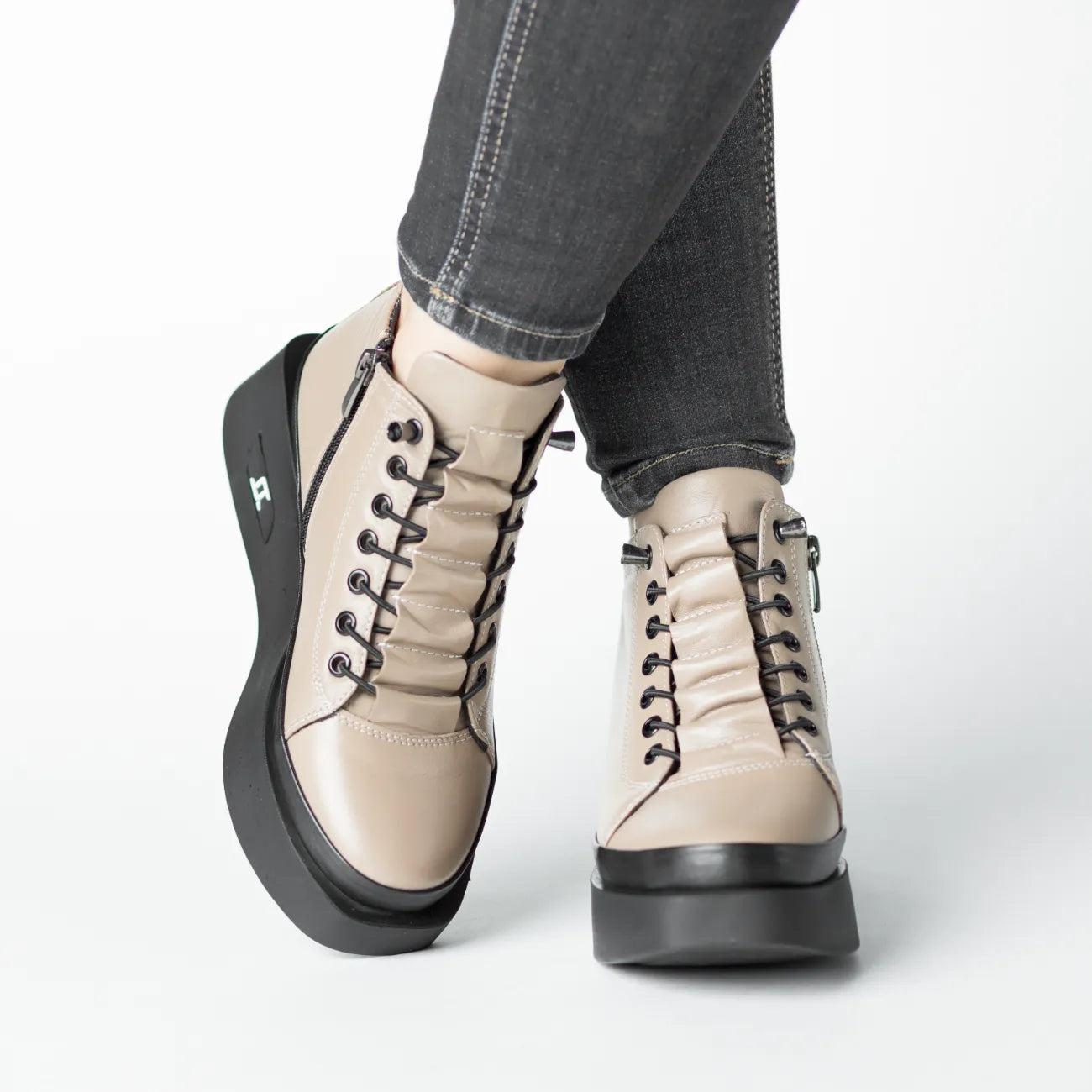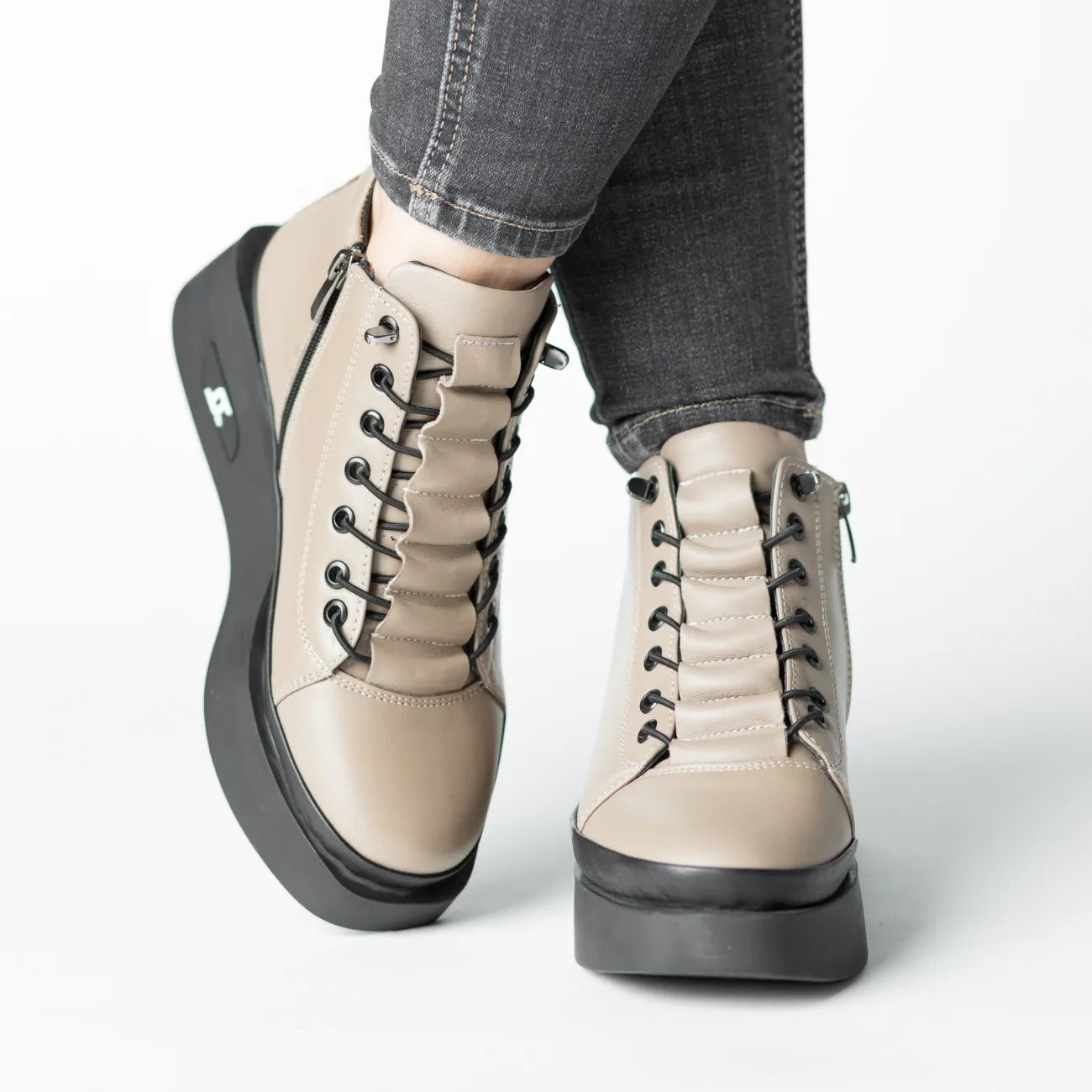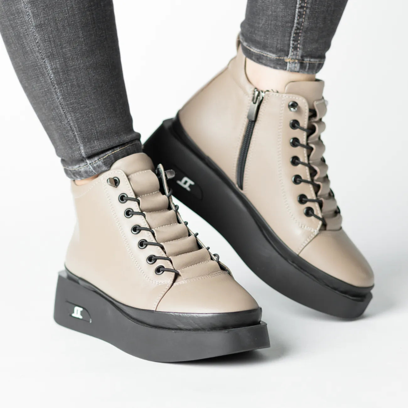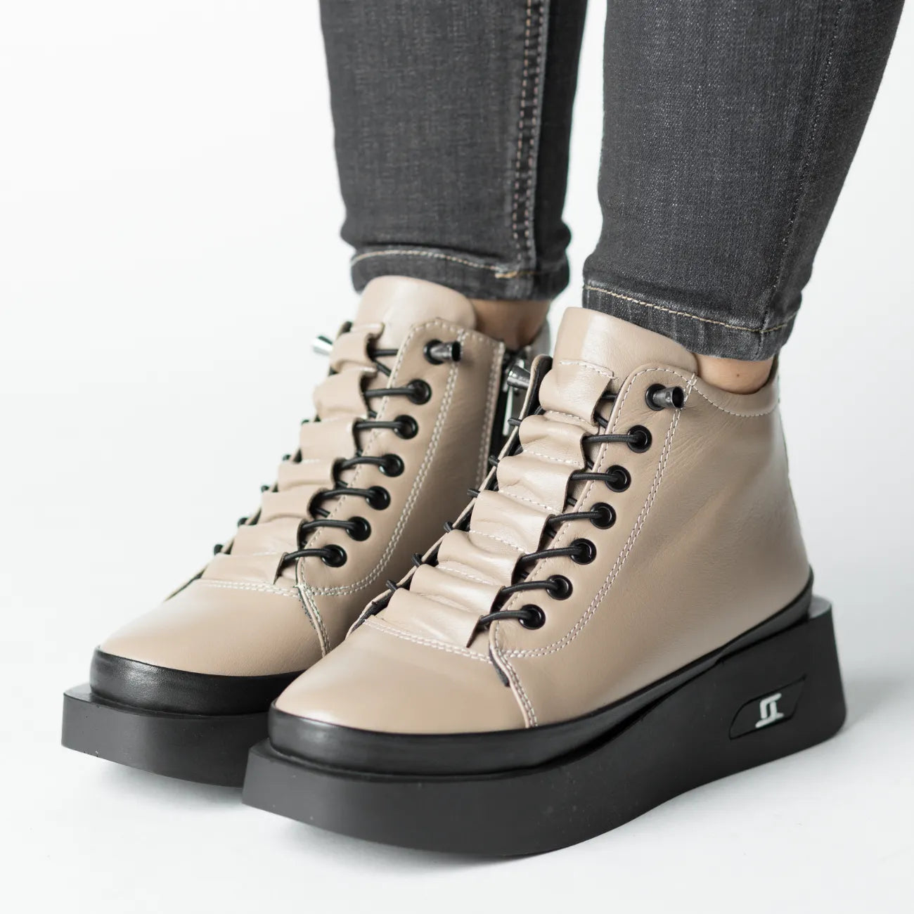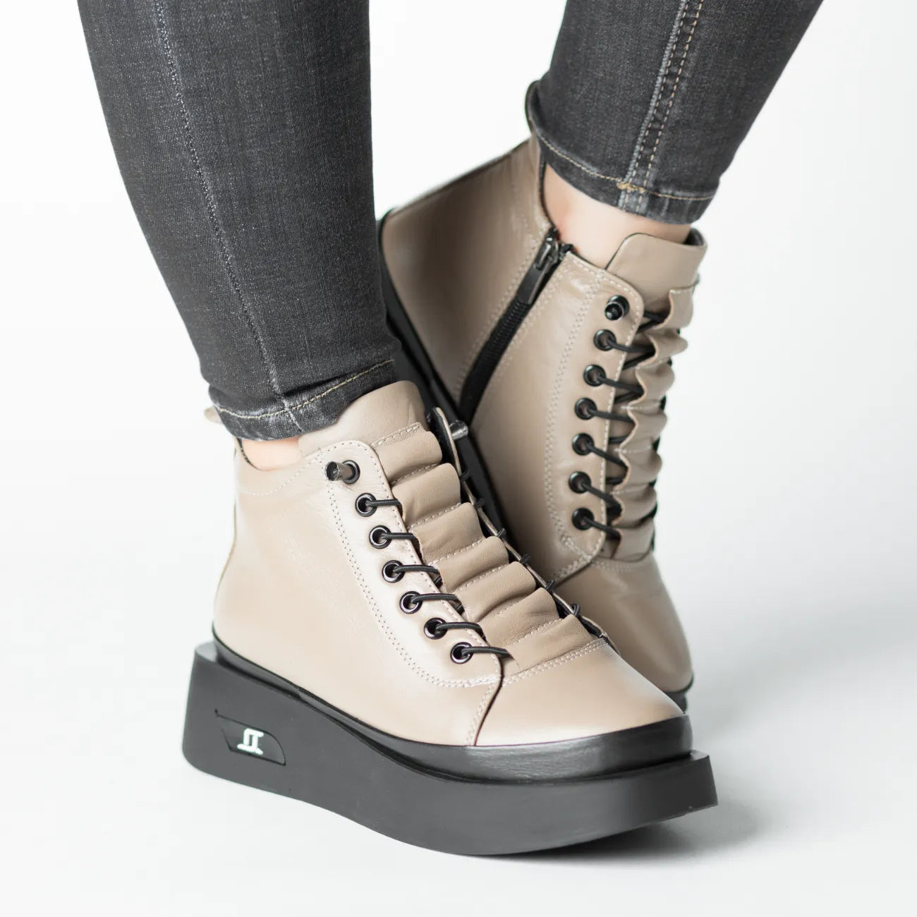 Ghete de dama din piele naturala, ce imbina durabilitatea cu un design elegant si functional. Realizate din piele fina, moale si rezistenta, aceste ghete asigura un suport excelent pentru picioare pe tot parcursul zilei. Inchiderea cu siret permite reglarea perfecta pentru confort personalizat, iar brantul memory, moale si prietenos cu pielea, sporeste senzatia de confort. Talpa din spate are o inaltime de 4,5 cm, oferind un plus de sustinere si un look rafinat. Un model ideal pentru femeile care apreciaza calitatea si stilul durabil.