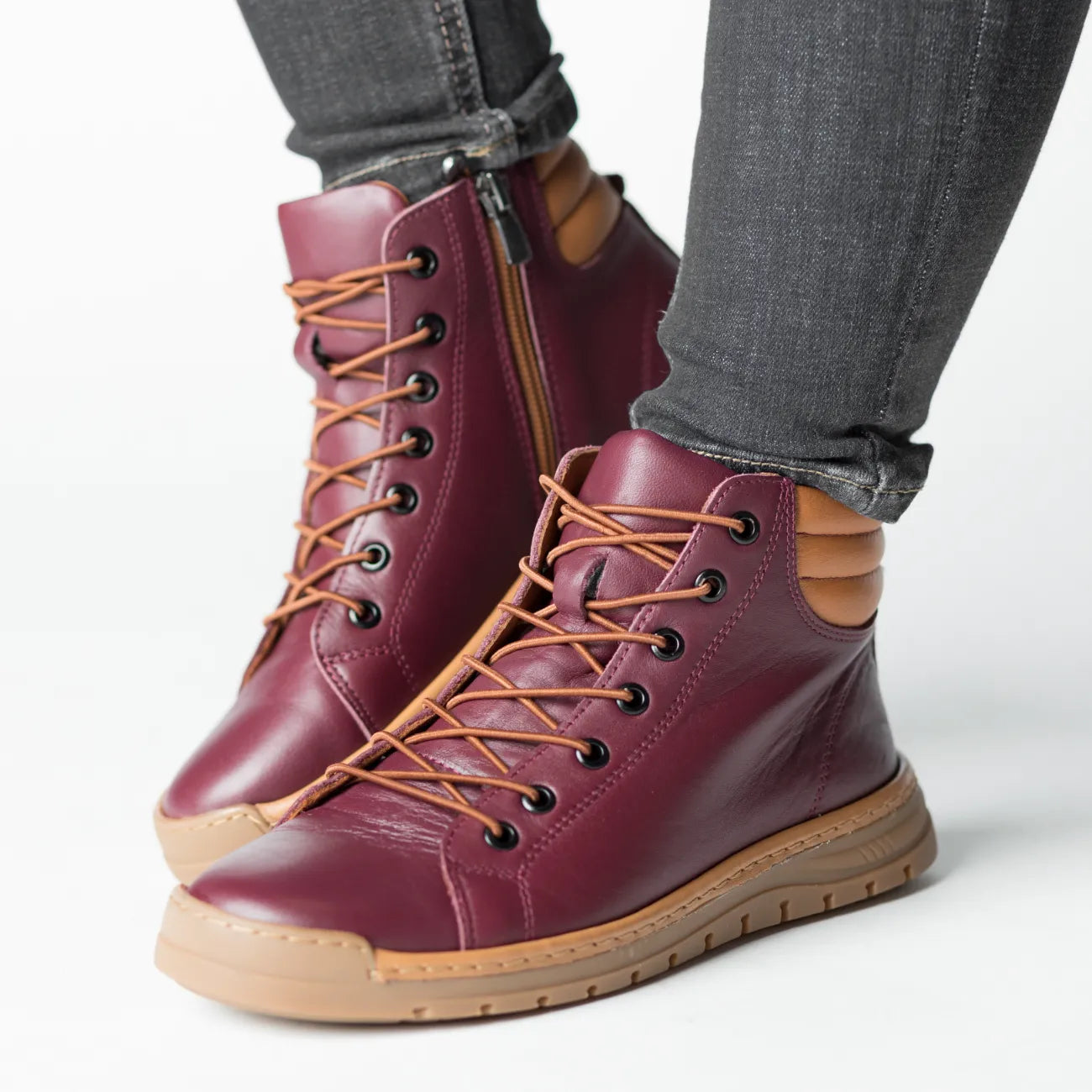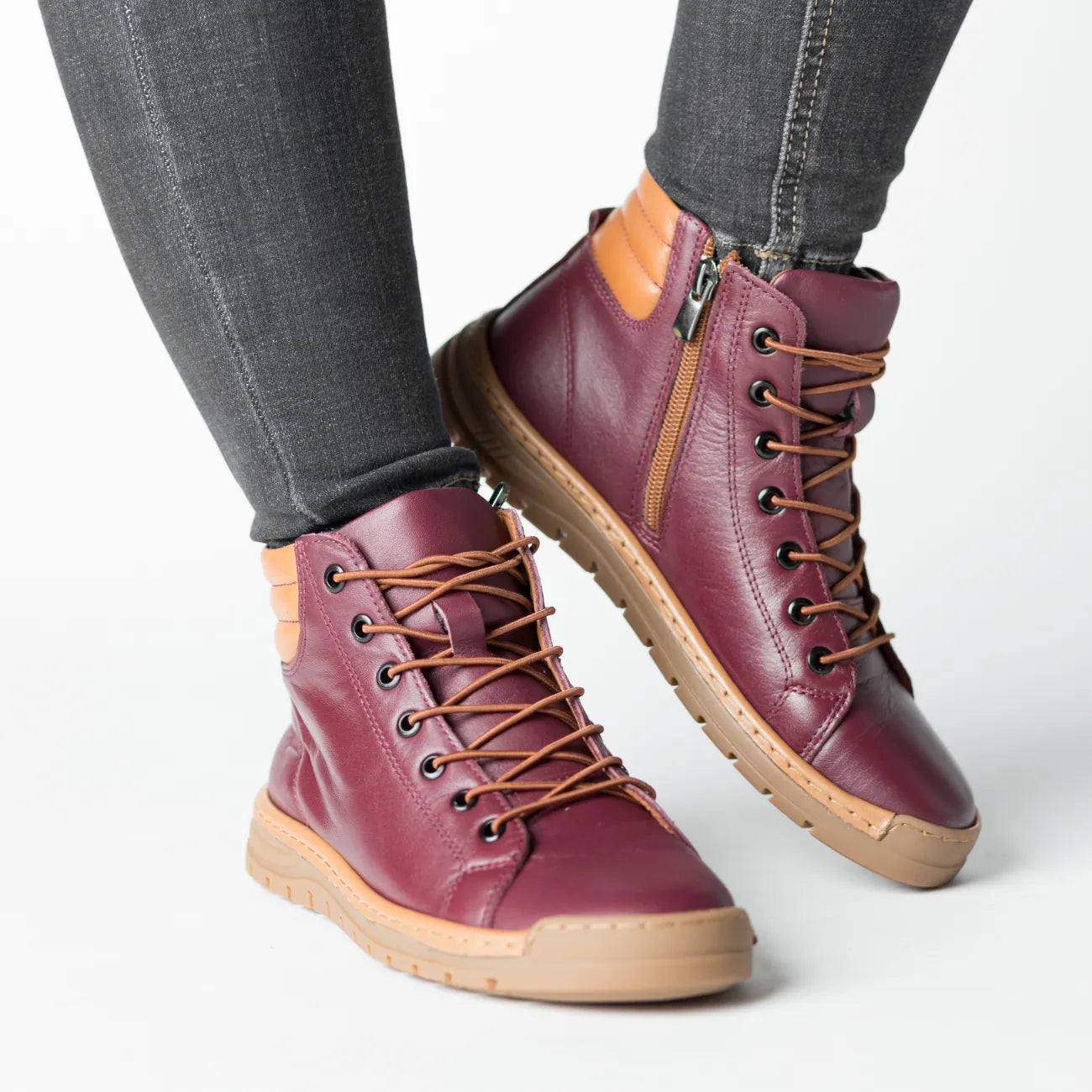 Ghete de dama din piele naturala, cu fermoar la glezna, ideale pentru purtarea de zi cu zi. Modelul combina nuantele bej si maro, oferind un aspect modern si versatil. Interiorul captusit asigura confort si caldura, iar talpa cu platforma de 3.5 cm ofera sustinere si stabilitate pe durata intregii zile. Recomandate pentru un stil casual, aceste ghete sunt fabricate din materiale de inalta calitate si sunt perfecte pentru tinute confortabile si elegante. Se recomanda alegerea marimii uzuale pentru o potrivire perfecta.