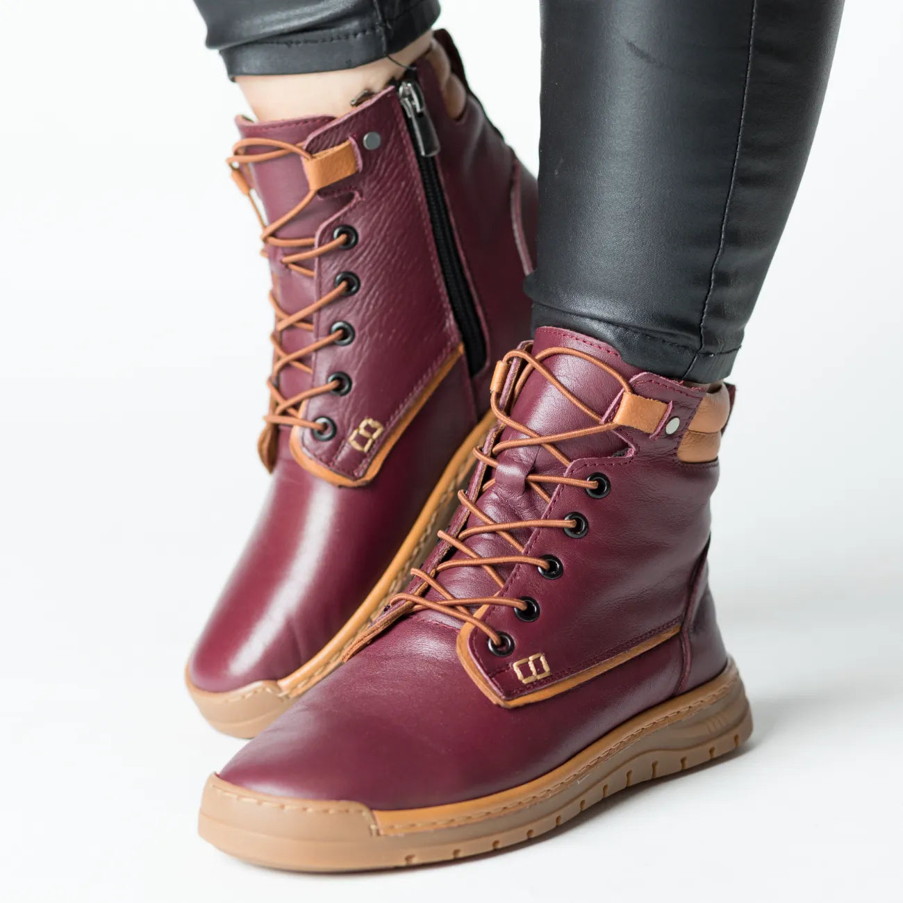 Ghete de dama din piele naturala, prevazute cu fermoar lateral pentru o incaltare rapida si usoara. Interiorul captusit asigura confort si caldura in sezonul rece, iar talpa usoara, cu inaltime de 2 cm in fata si 3 cm in spate, ofera stabilitate si sustinere optima. Cu o greutate de doar 349g la marimea 38, aceste ghete sunt comode si practice, perfecte pentru purtarea zilnica. Designul elegant si finisajele de calitate transforma acest model intr-o alegere versatila, potrivita atat pentru tinute casual, cat si smart-casual.