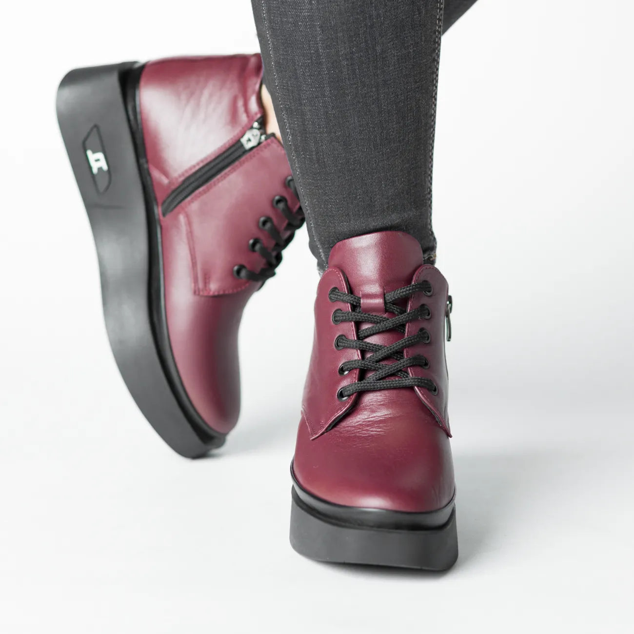 Ghete de dama din piele naturala, ideale pentru sezonul toamna-iarna, cu design practic si confortabil. Modelul bej are varful rotund si inchidere cu fermoar pentru o incaltare usoara si sigura. Interiorul usor izolat combina pielea cu material textil, oferind caldura si confort pe durata intregii zile. Talpa sintetică din cauciuc, cu grosimea platformei de 2,5 cm si toc de 4,5 cm, asigura aderenta si stabilitate chiar si pe suprafete alunecoase. Talpa nu este detasabila, iar constructia solida garanteaza durabilitate si sustinere optima. Un model versatil, perfect pentru tinute casual si smart-casual.