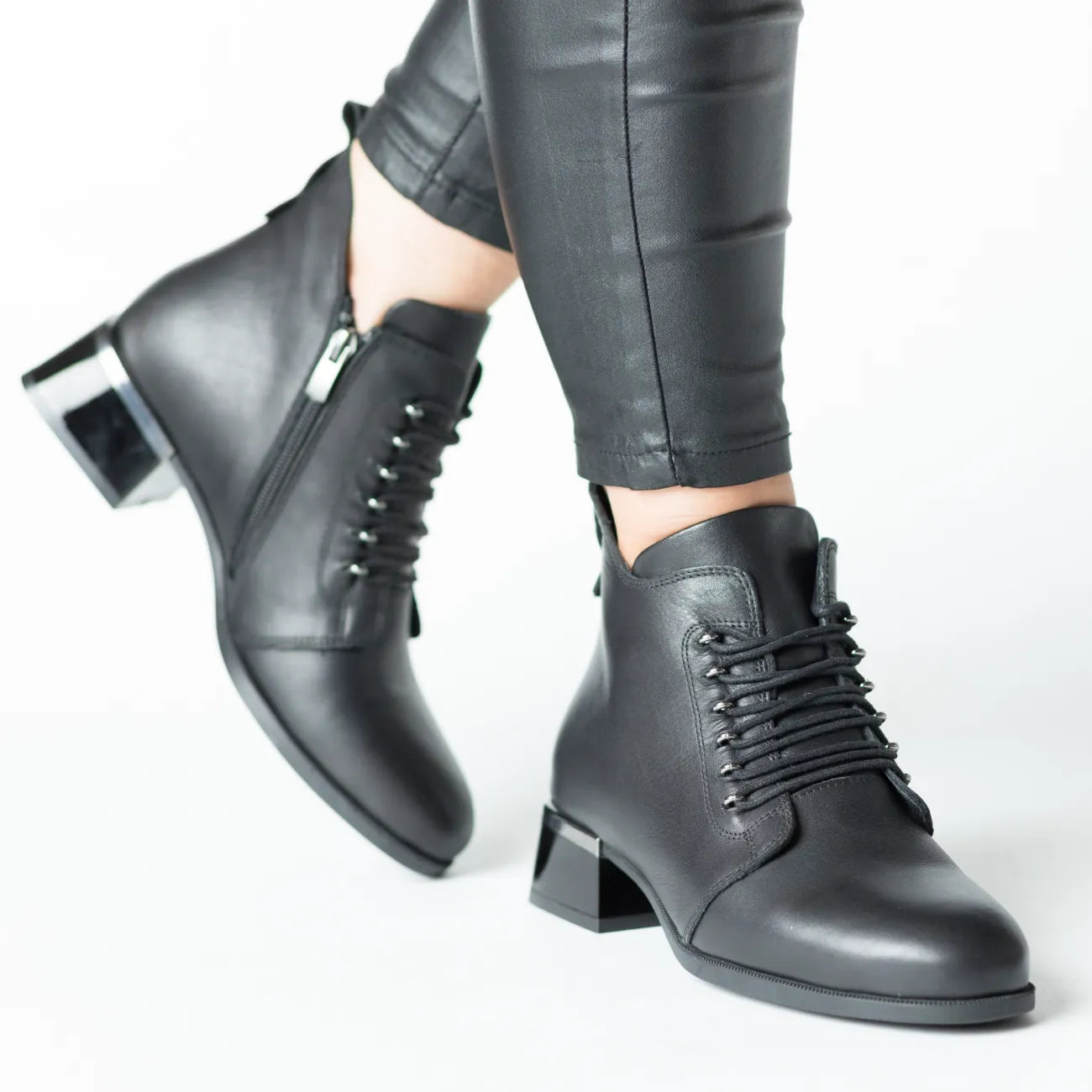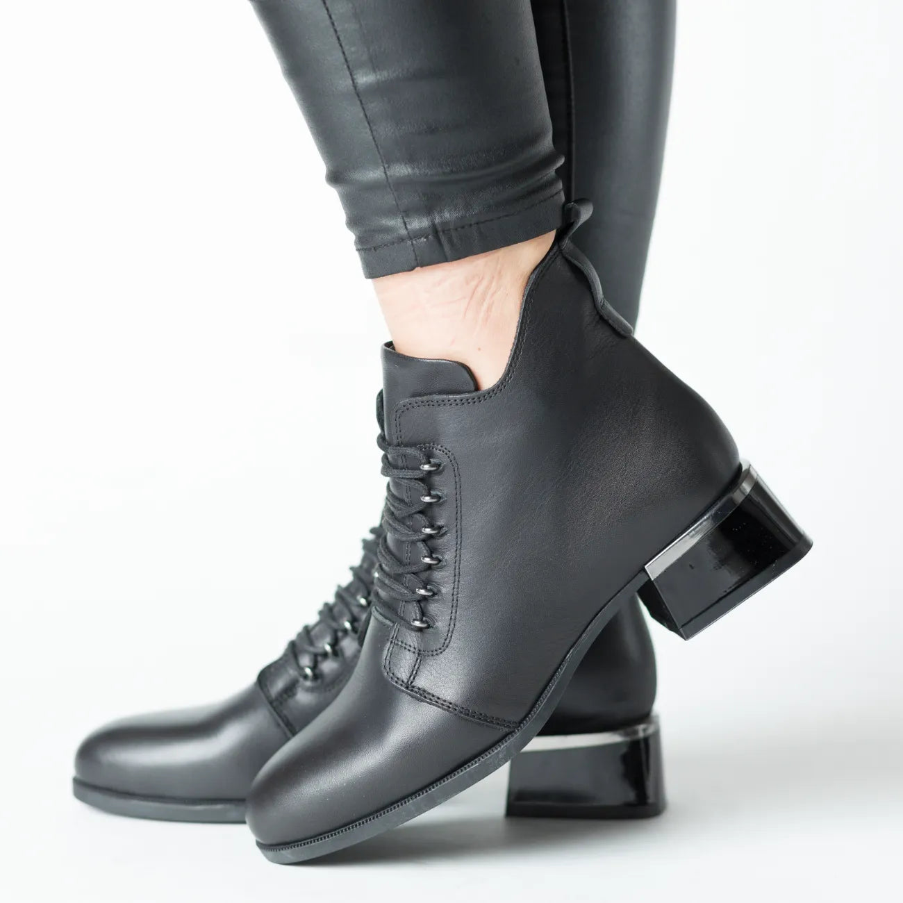 Ghete de dama casual din piele lacuita, cu fermoar la glezna pentru incaltare rapida si confortabila. Interiorul realizat din materiale calitative asigura o purtare placuta pe tot parcursul zilei. Talpa de 3 cm ofera stabilitate si sustinere optima, completand designul elegant si modern al acestor ghete. Un model versatil, perfect pentru tinute casual si ocazii zilnice.