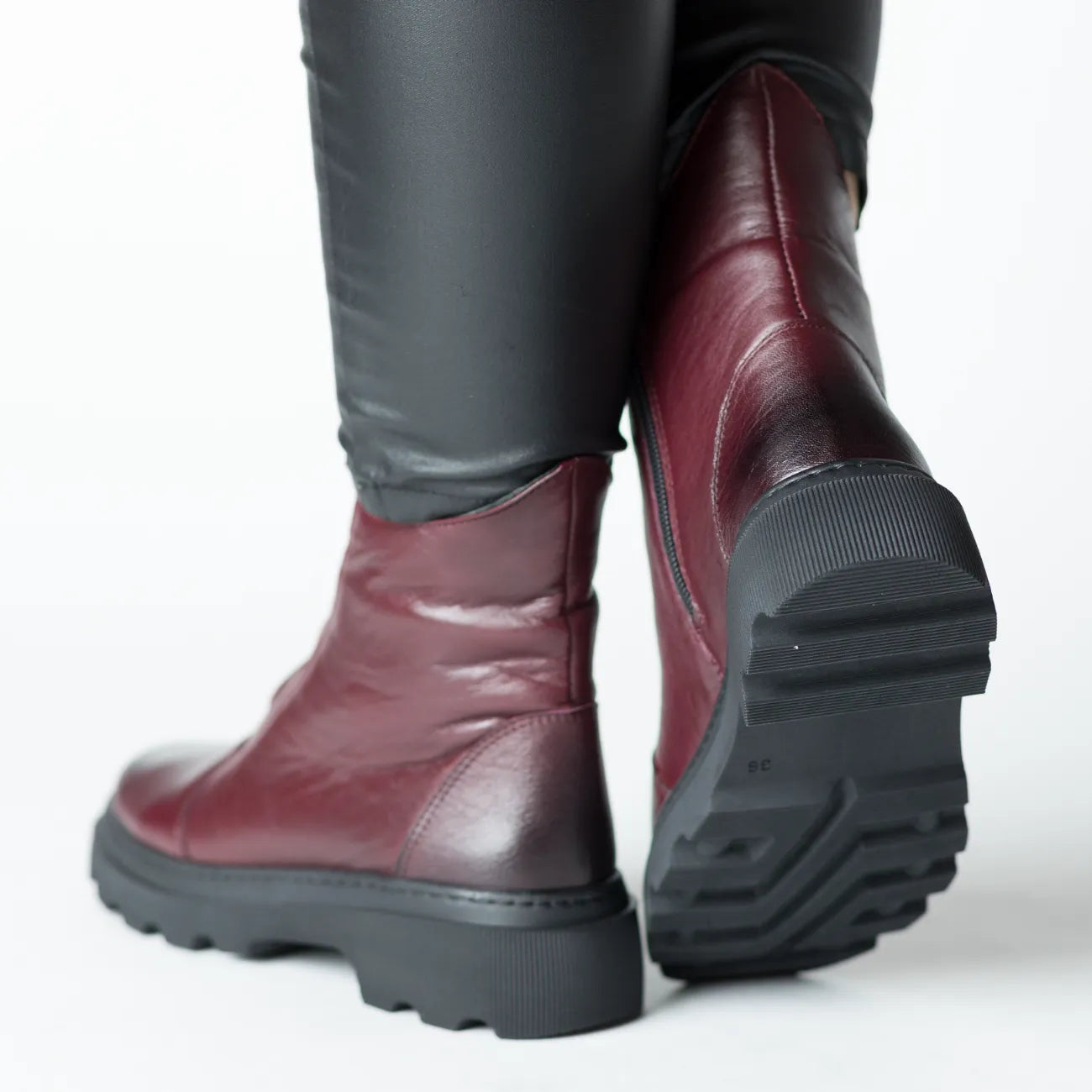 Ghete de dama cu platforma, lucrate pe calapod mare, confectionate din piele naturala de inalta calitate. Interiorul captusit asigura confort termic sporit, iar talpa usoara si rezistenta, cu inaltime de 3 cm in fata si 4.5 cm in spate, ofera stabilitate si sustinere pe durata intregii zile. Cu o greutate de doar 312g la marimea 38, acest model este usor si comod, ideal pentru purtare zilnica in sezonul rece. Designul modern si finisajele premium le fac potrivite atat pentru tinute casual, cat si pentru outfituri smart-casual, combinand perfect stilul cu functionalitatea.