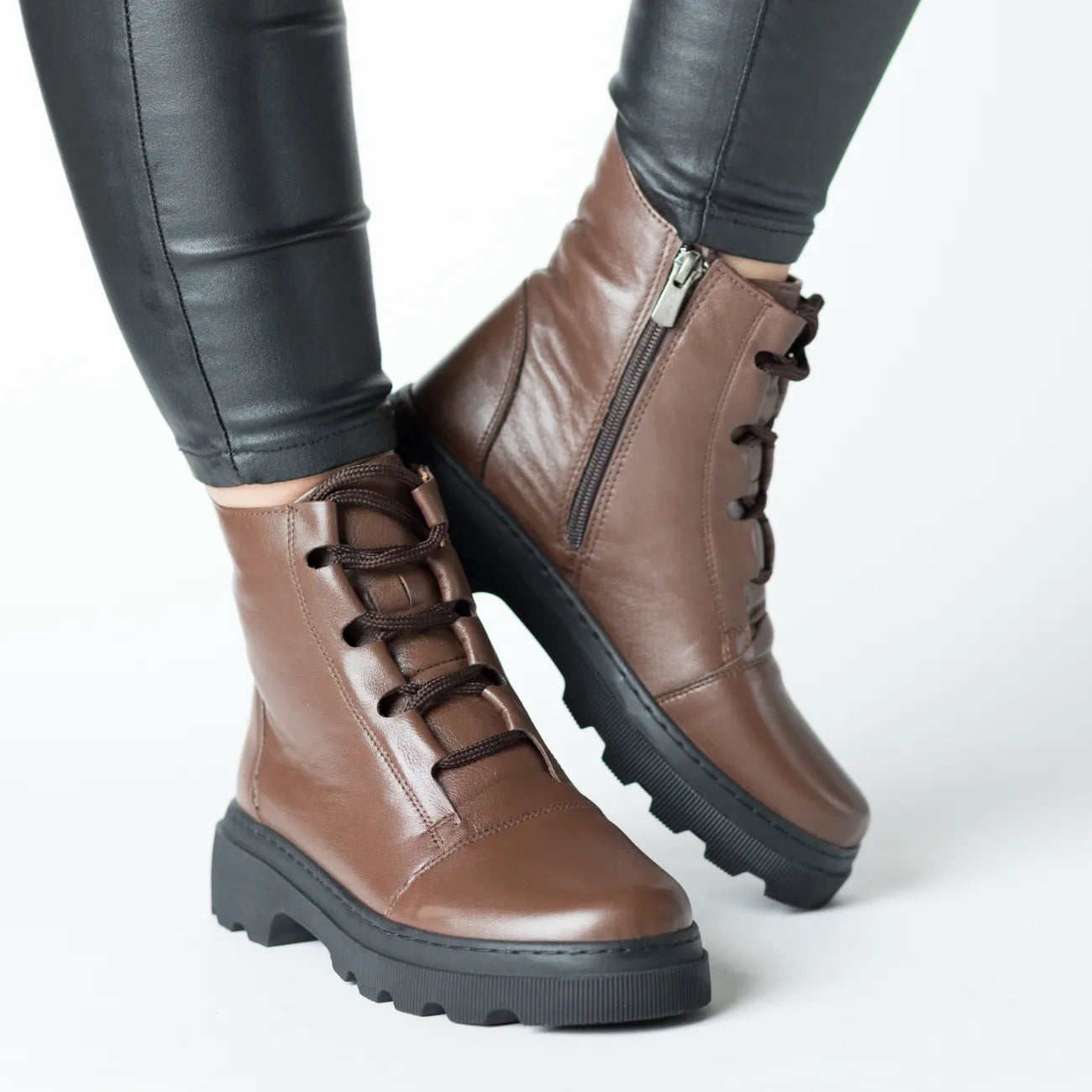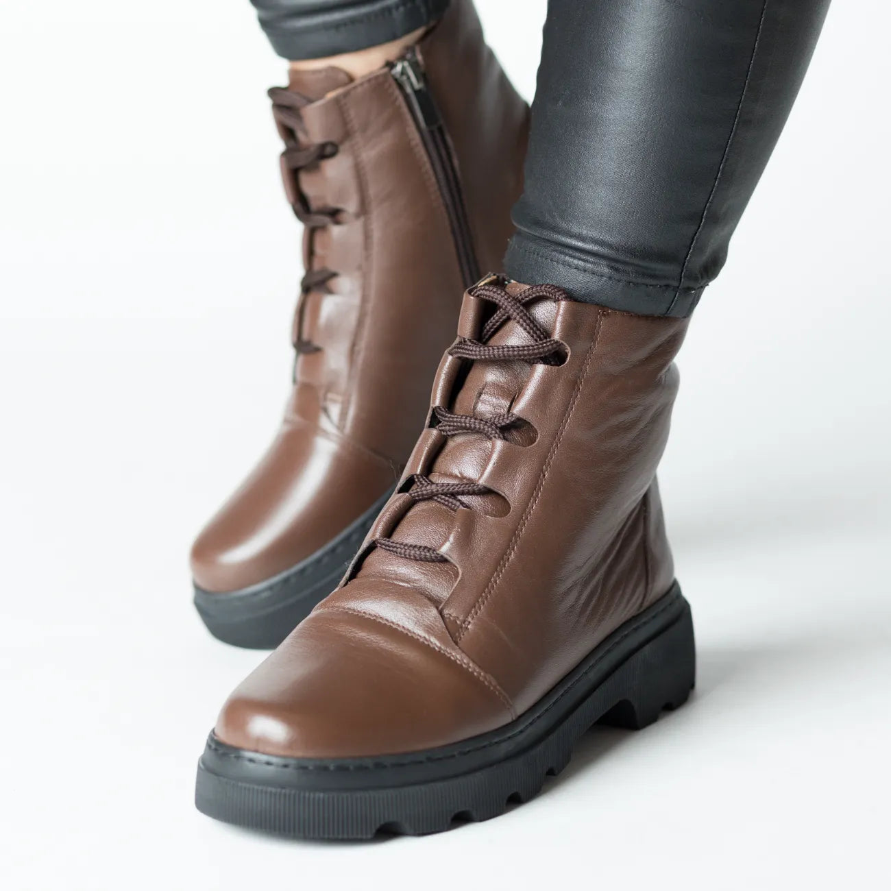 Ghete de dama cu platforma, lucrate pe calapod mare, confectionate din piele naturala de inalta calitate. Interiorul captusit asigura confort termic sporit, iar talpa usoara si rezistenta, cu inaltime de 3 cm in fata si 4.5 cm in spate, ofera stabilitate si sustinere pe durata intregii zile. Cu o greutate de doar 312g la marimea 38, acest model este usor si comod, ideal pentru purtare zilnica in sezonul rece. Designul modern si finisajele premium le fac potrivite atat pentru tinute casual, cat si pentru outfituri smart-casual, combinand perfect stilul cu functionalitatea.