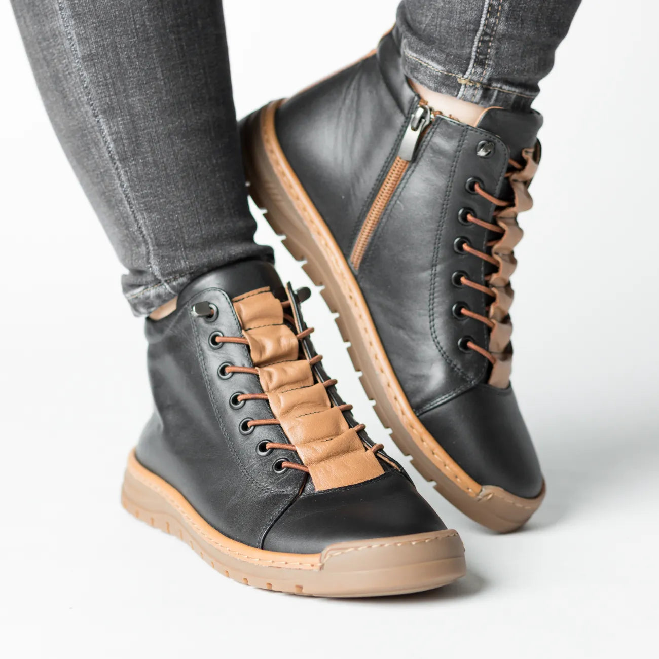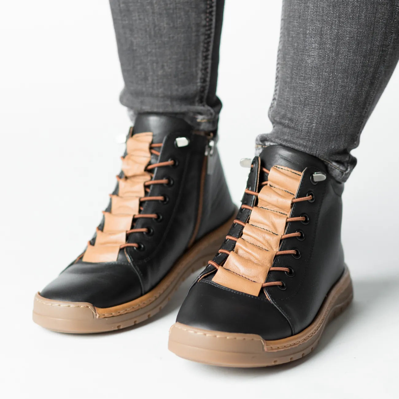 Ghete de dama cu talpa ortopedica din piele naturala, realizate pentru a oferi confort si sustinere pe tot parcursul zilei. Interiorul captusit mentine caldura si sporeste confortul, iar talpa ortopedica de 3 cm ajuta la o postura corecta si la reducerea oboselii picioarelor. Cu o greutate de doar 347g la marimea 38, acest model este usor si practic, ideal pentru purtarea zilnica. Designul modern si finisajele de calitate transforma aceste ghete intr-o alegere versatila, potrivita atat pentru tinute casual, cat si smart-casual. Calitate superioara, concepute pentru durabilitate si confort maxim.