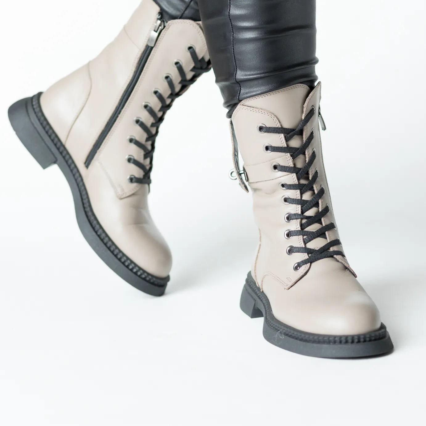 Ghete inalte de dama din piele naturala, model army marca Benvenuti, ideale pentru un stil casual si confort zilnic. Culoarea bej confera versatilitate si usurinta in asortare cu diferite tinute. Captuseala si acoperisul brantului din material textil asigura respirabilitate si confort pe durata intregii zile. Talpa TR ofera aderenta buna si durabilitate, fiind potrivita pentru diverse tipuri de suprafete. Un model practic si modern, perfect pentru femeile care cauta echilibrul intre stil si functionalitate.