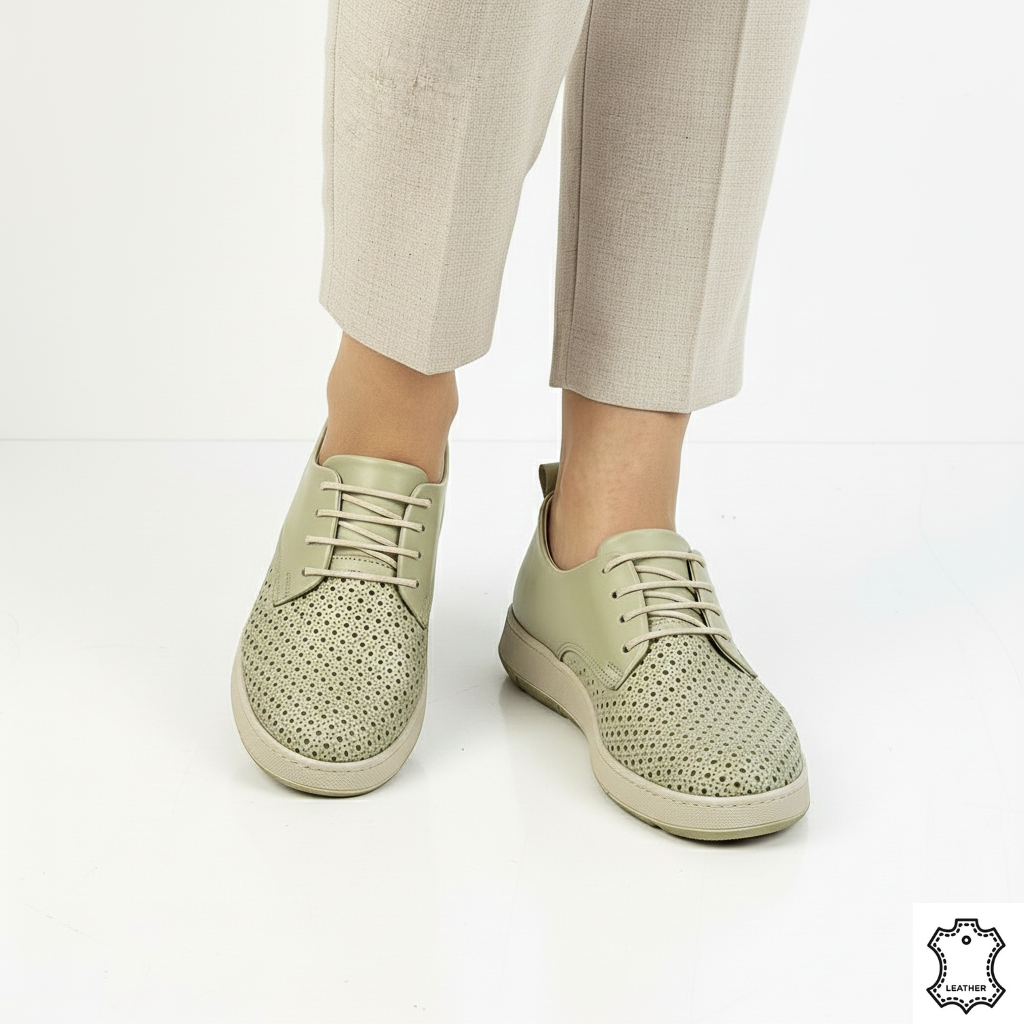 Descoperă echilibrul perfect între stil și comoditate cu pantofile din piele naturală Calida verde-avocado! Acest model sofisticat este ideal pentru femeile care își doresc încălțăminte confortabilă, dar și elegantă, perfectă pentru sezonul cald. Realizate din piele naturală premium, aceste pantofi oferă flexibilitate, durabilitate și un confort de neegalat chiar și după ore întregi de purtare.