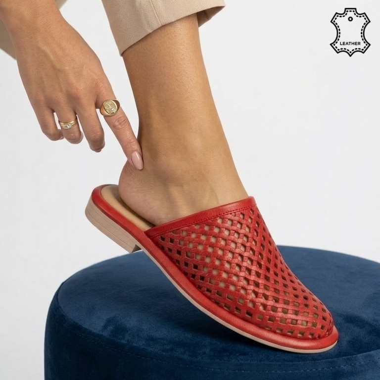 Piele Naturală Premium: Culoarea roșie vibrantă și textura fină a pielii naturale fac din acești papuci un accesoriu versatil și modern.