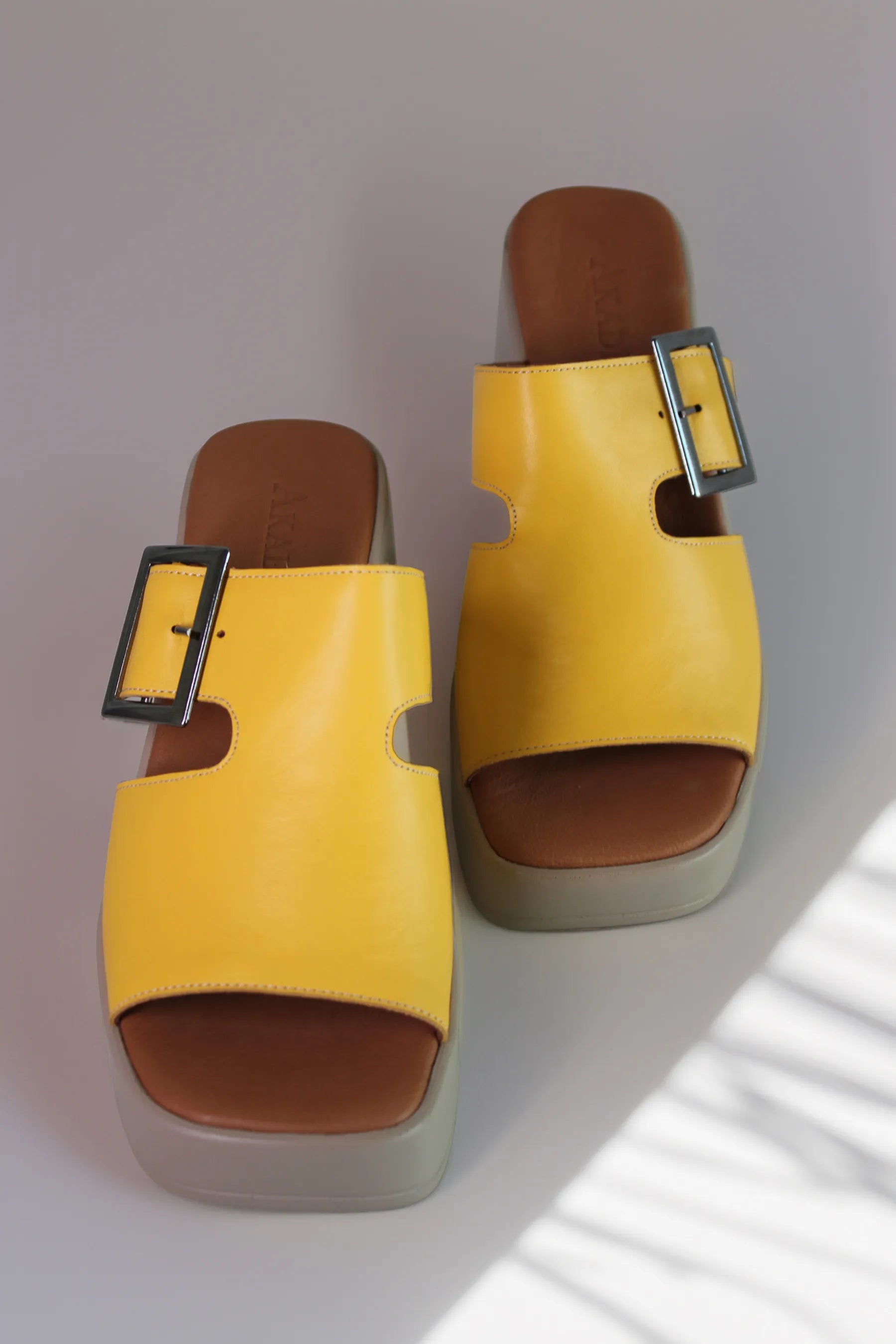 Alege papucile din piele naturală Aeris Galben pentru un look sofisticat și un confort desăvârșit în zilele călduroase! Comandă acum și bucură-te de încălțăminte premium, realizată special pentru femeia modernă!